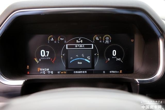 这种模式为四驱,发动机的油门调校会非常灵敏,并且变速箱升挡时机会更晚一些,保证发动机一直工作在高转速强动力的峰值扭矩平台中,但绝对不会出现转速过高频繁升挡导致扭矩下降的现象。而且车尾排气在Baja模式时会异常响亮浑厚,可以让驾驶员通过听“沉醉”的排气音浪来掌控油门开度,控制车速。另外,这款10AT变速箱换挡间隙非常小,负责任的说,堪比目前很多性能车的双离合器变速箱,如此短的换挡间隙也会保持动力不间断。