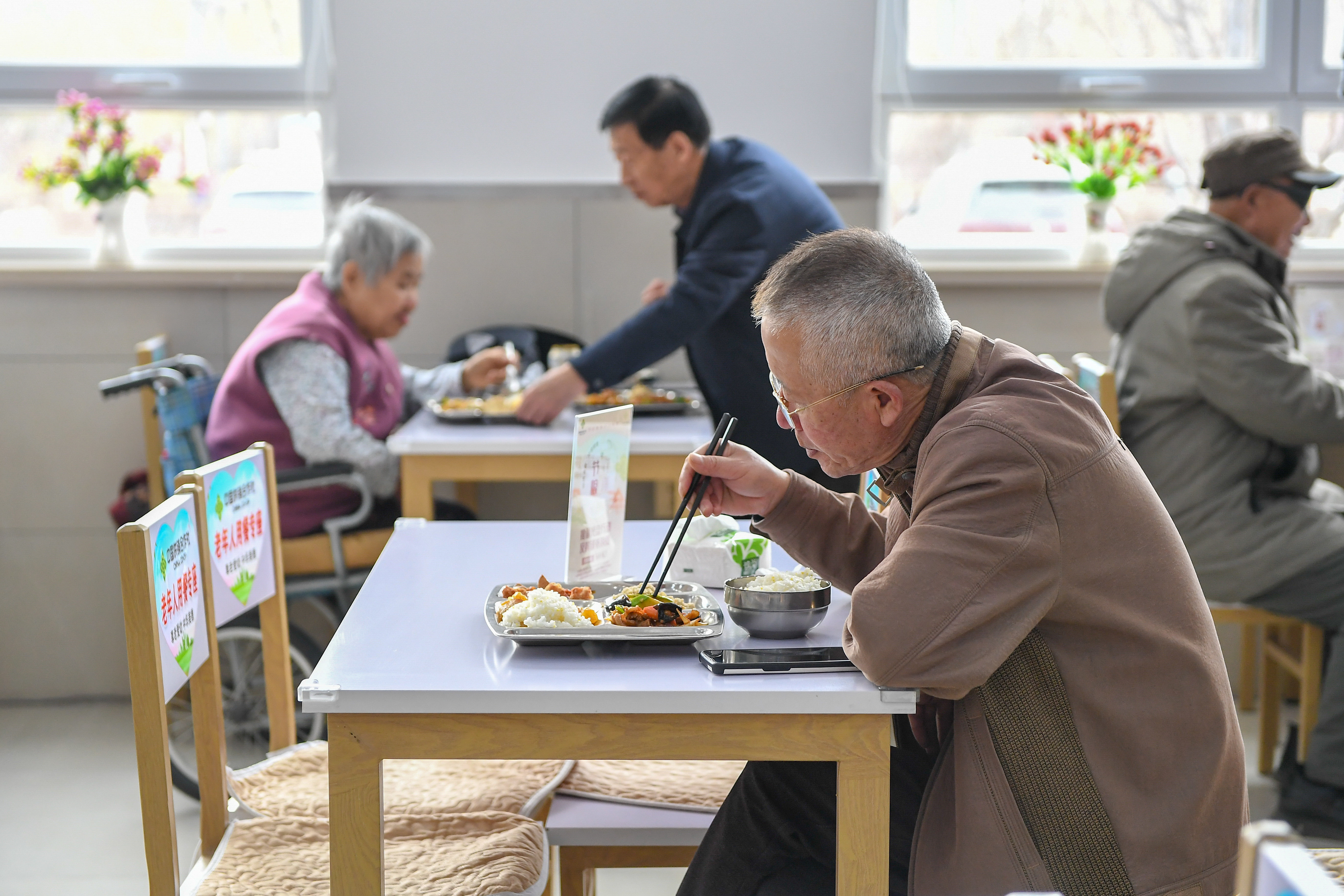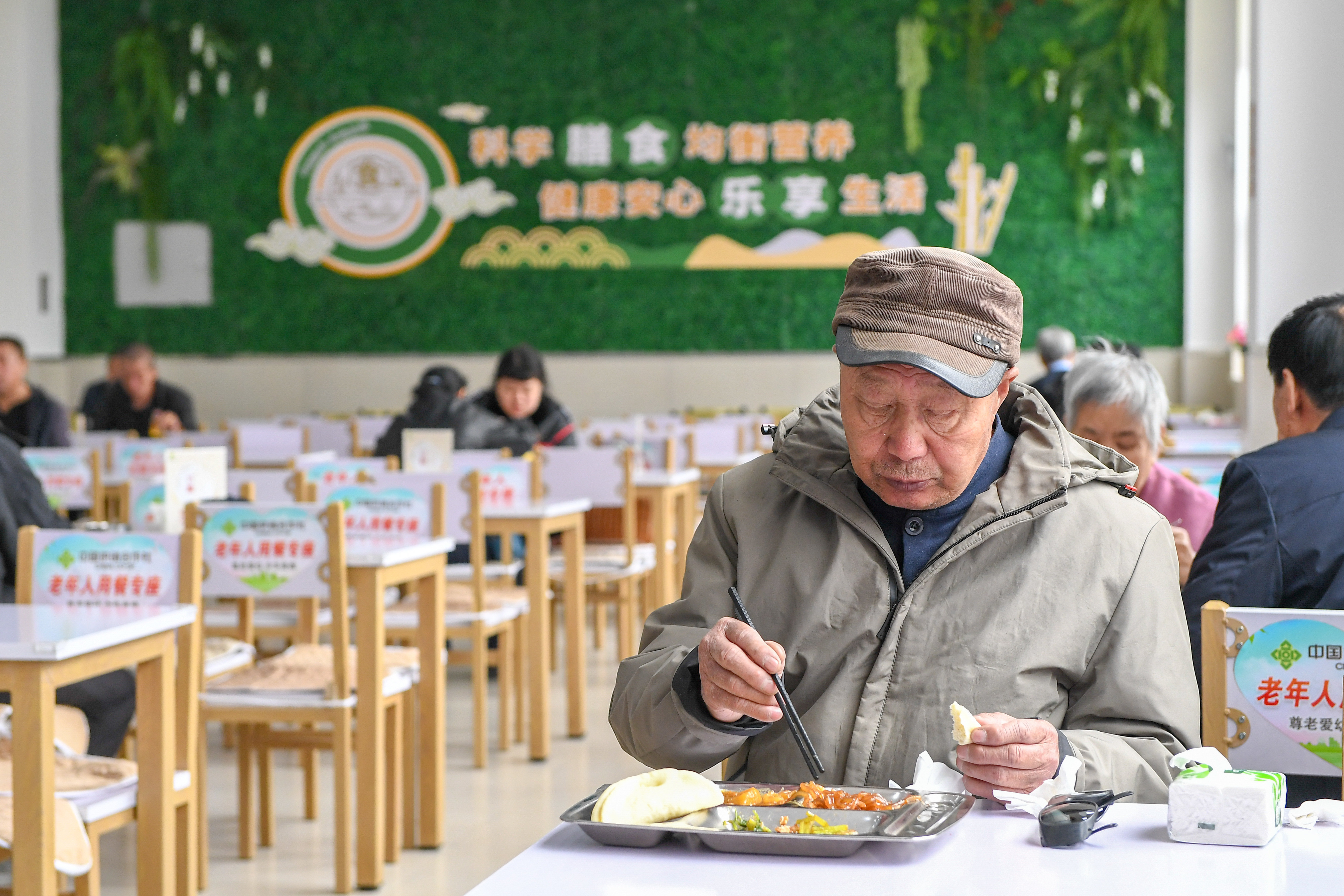 4月14日,老人在吉林省四平市梨树县幸福社区食堂就餐。该食堂是吉林省民政厅重点支持的100个社区老年食堂之一。新华社记者 张楠 摄