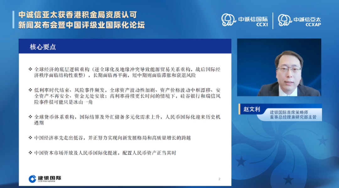 建银国际首席策略师、董事总经理兼研究部主管赵文利作主题演讲