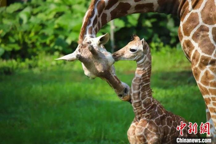 中新网广州4月14日电 (程景伟 王益)广州动物园14日发布消息,该园长颈鹿馆新生的长颈鹿宝宝,当日迎来了“满周”。