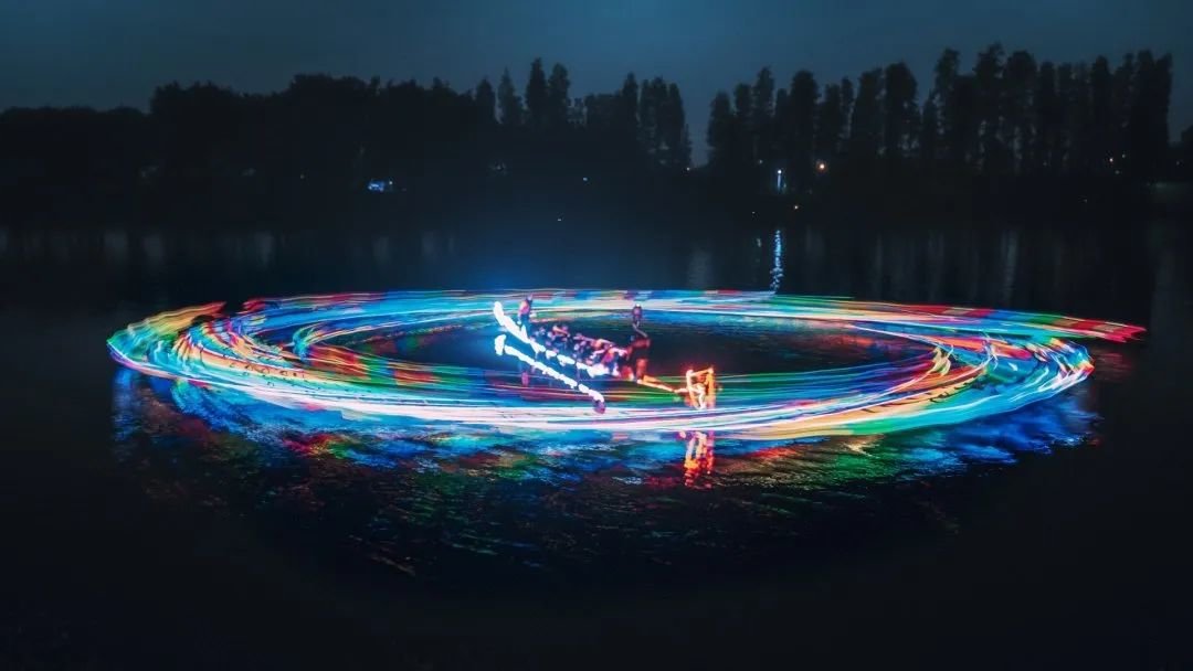 每一轮紧张刺激的竞速,都被定格成一幅幅绚丽的光绘作品,