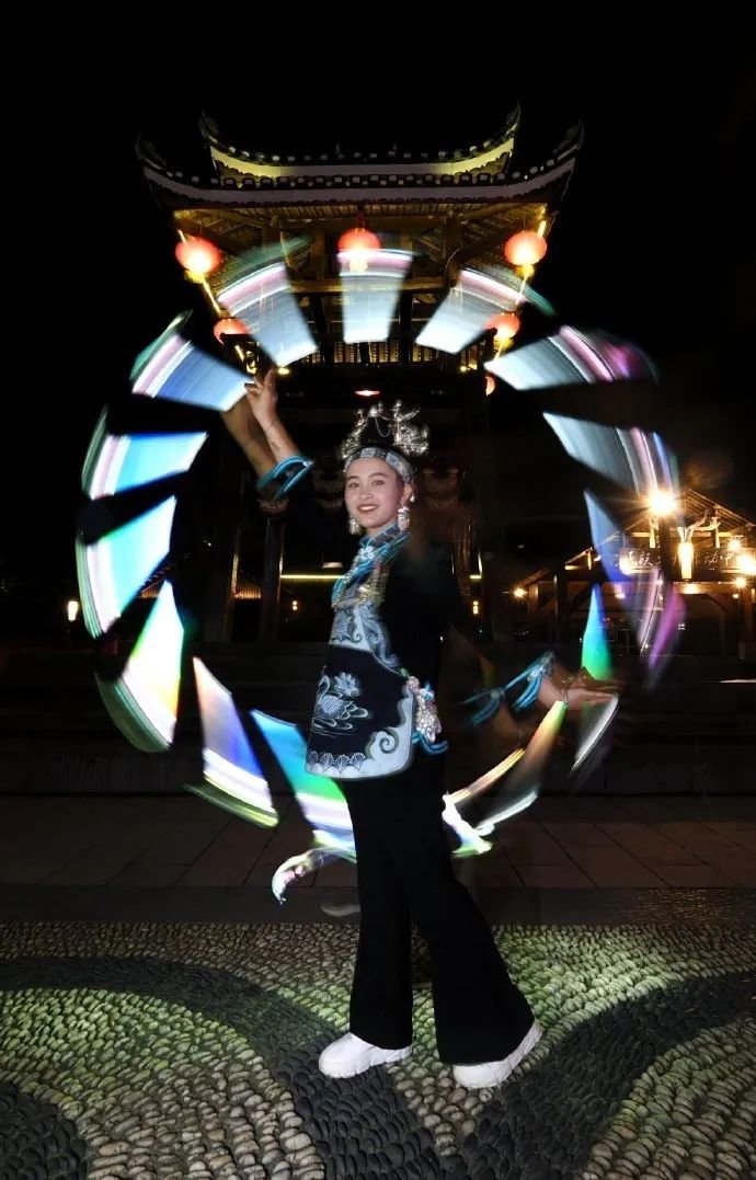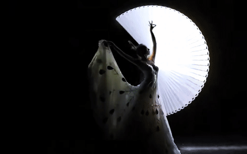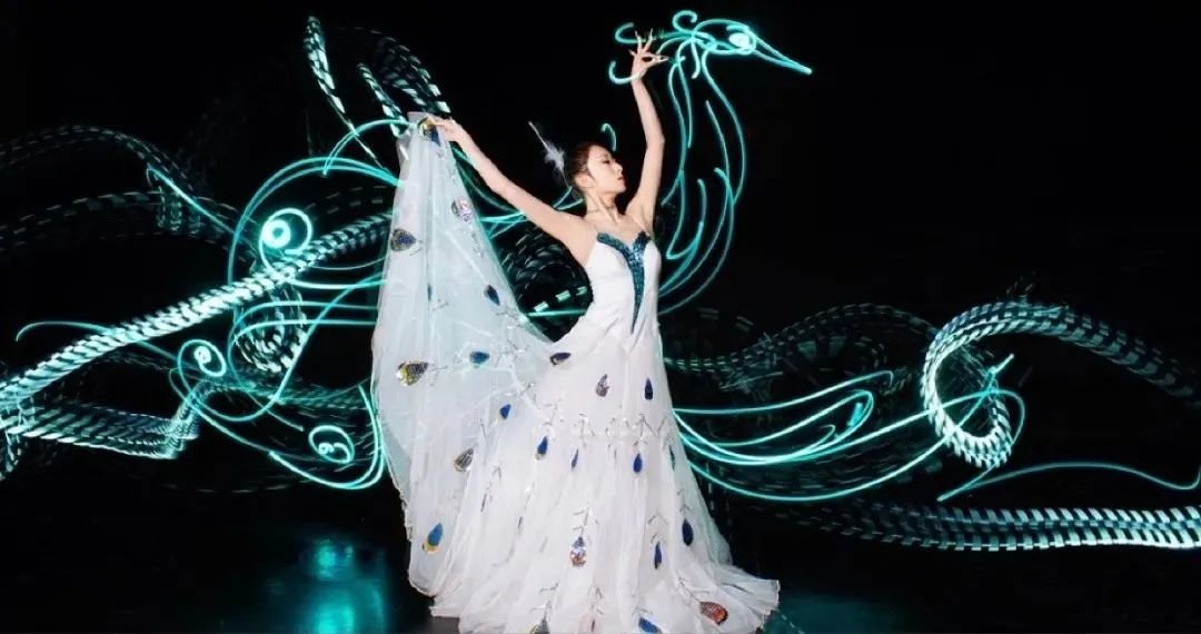 将炫目的“光绘+子弹时间特效”,应用于经典民族舞蹈《雀之灵》、《月光》,