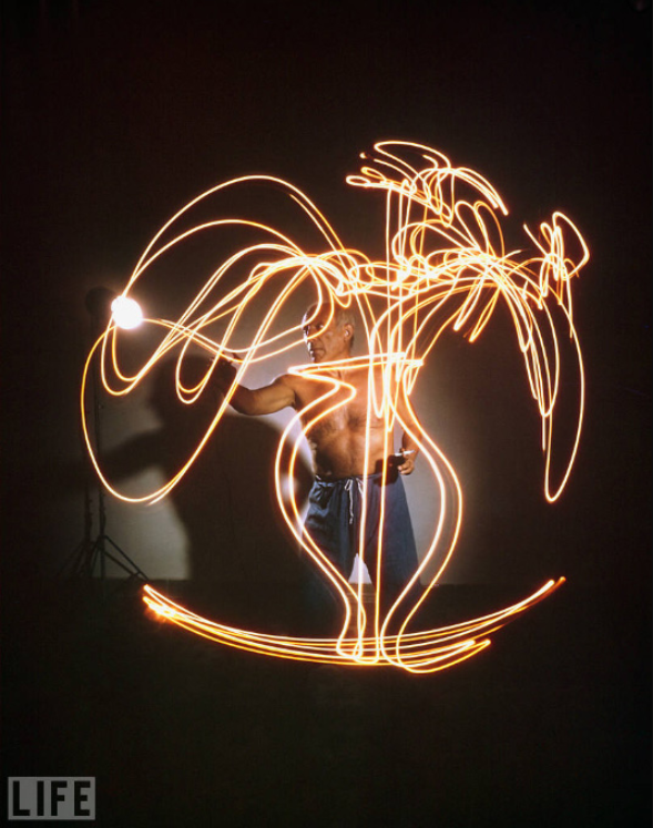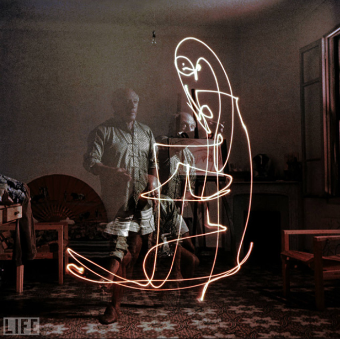 一次偶然的机会,王思博因为自学摄影,偶然翻阅到了,LIFE杂志上刊登的,光绘大师毕加索的作品,