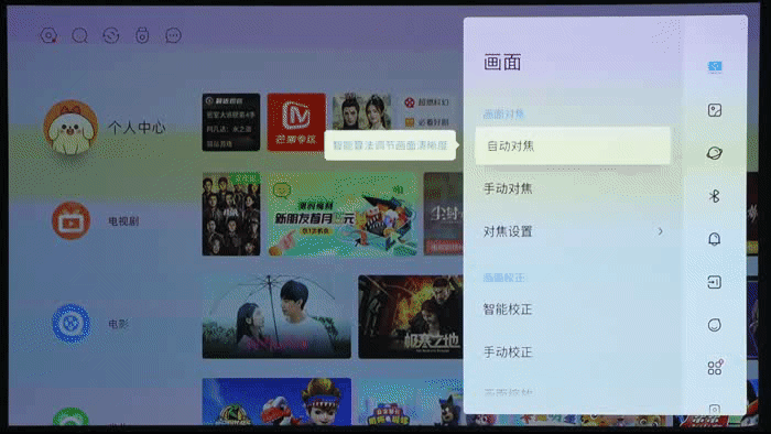 通过我们实测,当贝X5从关机熄屏到开机呈现系统主页面(包含开机自动对焦、校正的时间)约需5秒,应用完成安装平均约需8秒,应用启动运行平均约需4秒,不管是下载还是运行,当贝X5的响应都非常迅速,不同栏目页面层级之间的切换也不会出现卡顿的情况。