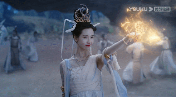 剧中的陈都灵,全程都是敦煌画艺术中的飞天造型。