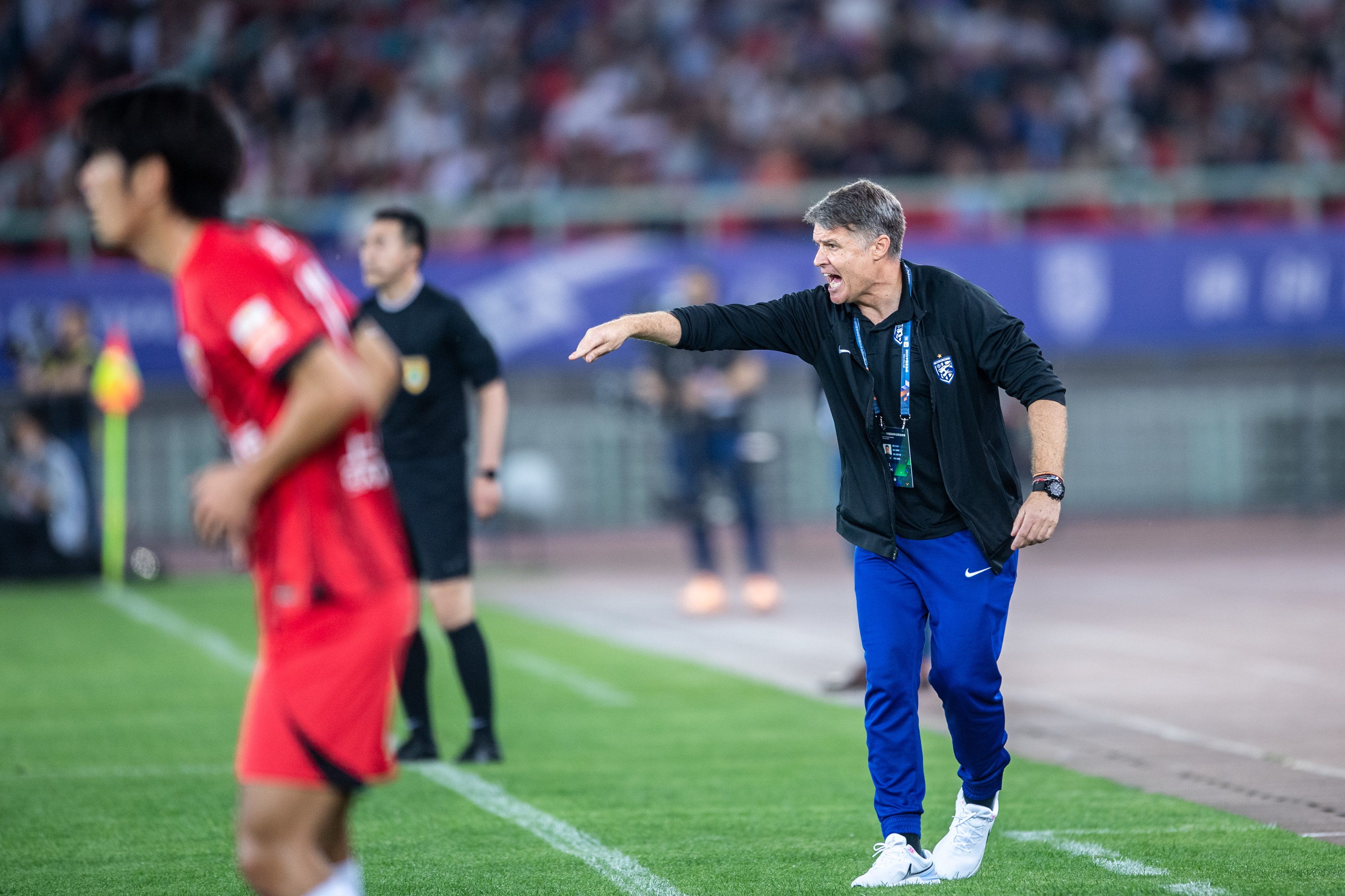 4月15日,武汉三镇队主教练佩德罗(右)在比赛中。新华社记者 伍志尊 摄