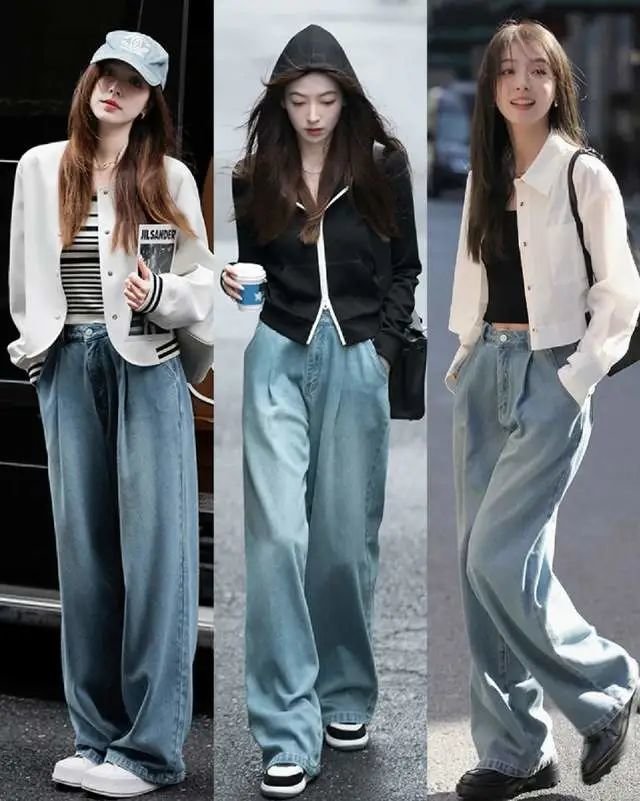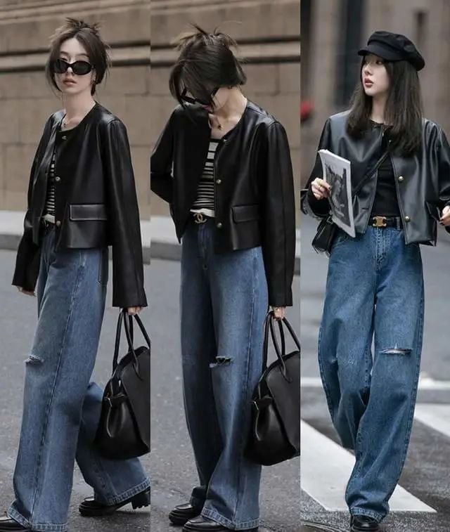 黑白短款外套搭配牛仔阔腿裤真的绝绝子