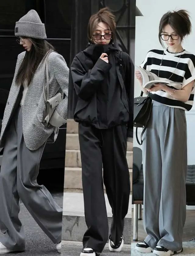 春天我们多了户外活动,更喜欢穿得休闲随性一些,所以衣橱里可以多准备几条阔腿裤,想要显瘦的话,可以选择经典的黑色,想要时尚百搭,灰色是个不错的选择。