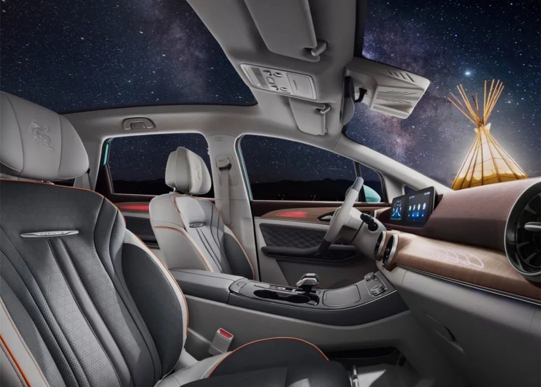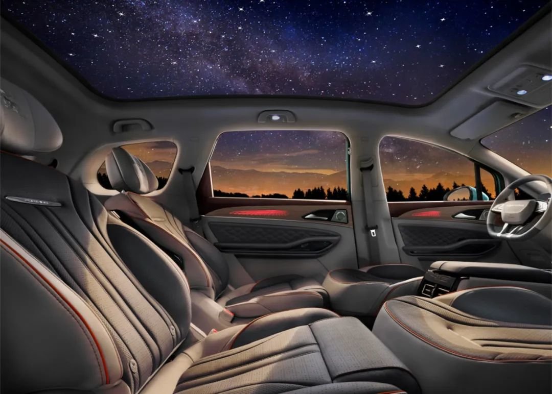 其中星空版就是把原本的可开启分段式全景天窗,换成了不可开启的全景天幕,且有两款配置。
