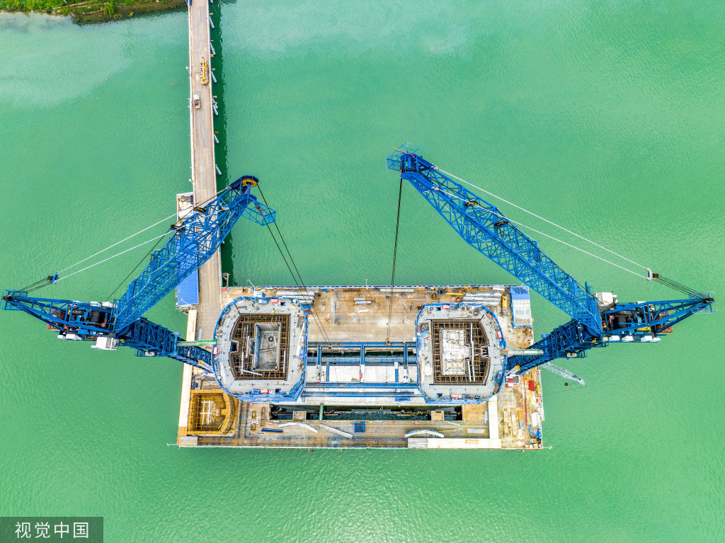 日前,广西梧州市,航拍建设中的平(南)岑(溪)高速公路浔江特大桥。平(南)岑(溪)高速公路是连接广西贵港市平南县和广西梧州岑溪市的重大交通项目。浔江特大桥为该项目全线控制性工程,全长1.5公里,采用独塔斜拉-悬吊协作体系。目前浔江特大桥项目建设推进顺利,建成通车后,将推动西江沿线资源的开发与利用,助力珠江—西江经济带发展。何华文 摄