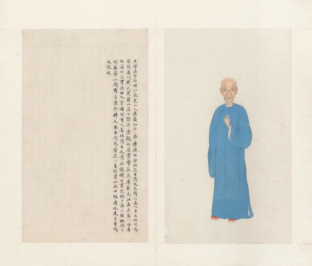 王学浩(1754—1832)(图1)是清代乾嘉时期的山水画家,字孟养,号椒畦,别署学圃老人,江苏昆山人,乾隆五十一年(1786)举人。王学浩一生以布衣终老,以诗文书画见长,著有《山南论画》和《学圃诗钞》等。在绘画方面,他以山水见长,取法黄公望、董其昌及清初“四王”诸家。关于其画艺,已有论者论述尤详,此不赘述。除山水画之外,他还兼擅人物、花卉,有《凤桥像》横幅(与楚白庵合作,北京故宫博物院藏)、《补雷塘庵主小像》轴(1808,南京博物院藏)、《补雷塘庵主像》轴(1808,扬州市博物馆藏)、《山水花卉册》(辽宁省博物馆藏)、《岁朝清供图》(吉林大学藏)等传世。