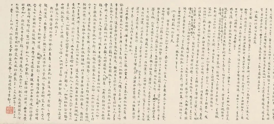 第二段则全文抄录其《记宣南诗会图卷》一文,且加注标点,有部分修改痕迹,并在文末附记“一九六四年十一月十三日,费了一天功夫,把这篇文字抄写完毕。谢国桢记于首都”,钤白文方印“谢国桢印”。在此段的引首,钤有朱文方印“刚主述作”。看得出来,谢国桢对此画倾注了心力。不仅撰文研究,指出其文物价值与学术意义,更精心呵护,并以秀雅而端庄的小行楷题跋近千言,足见其用情之深。在谢国桢题跋之后的次年即1965年,中国历史博物馆(即现在的中国国家博物馆)在北京建外大街永安南里10号楼的谢国桢寓所,以60元从其手中征集此画,此画最终入藏公库,也算是化私为公,适得其所了(图5)。