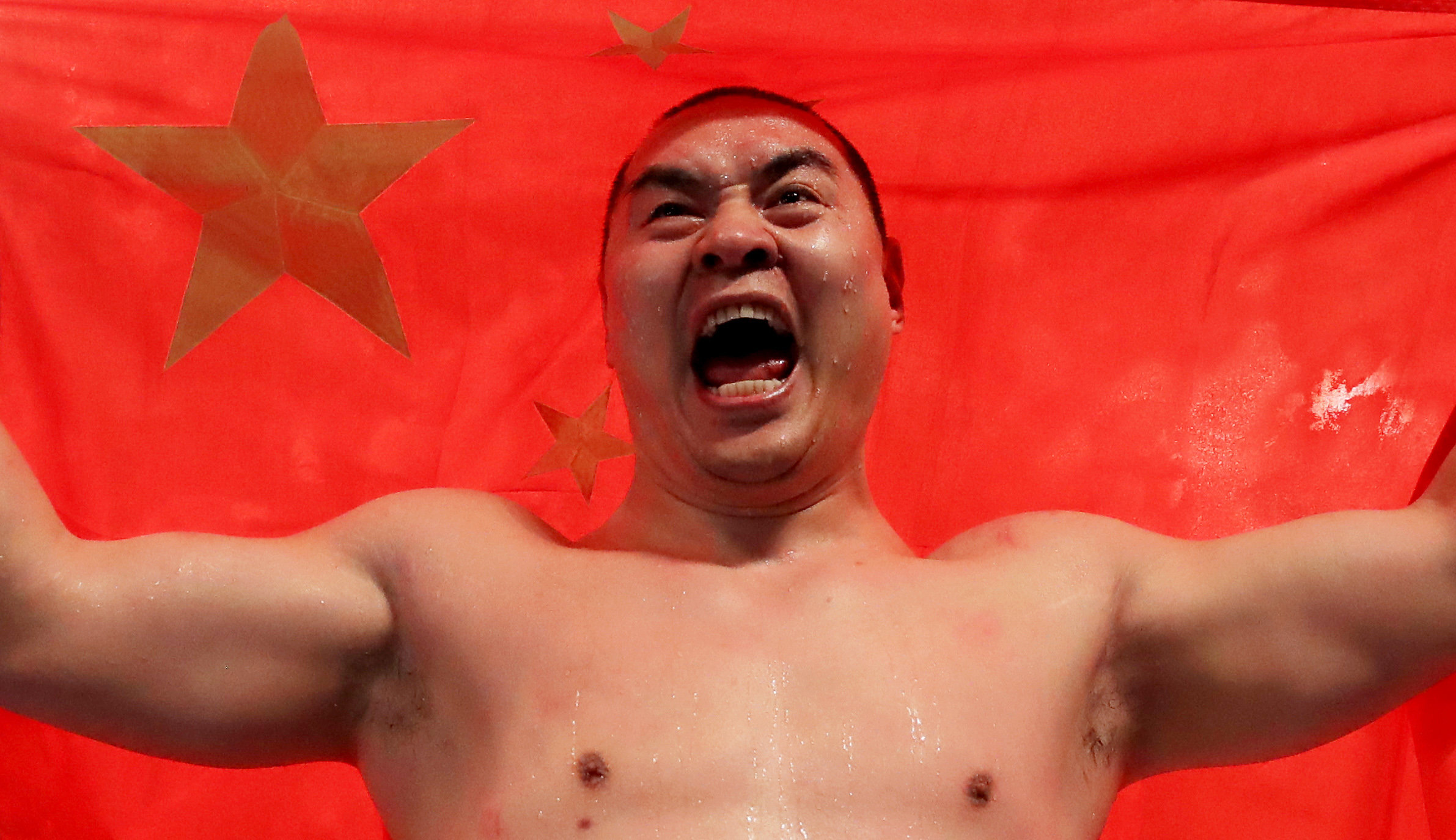 4月15日,张志磊庆祝胜利。新华社记者 李颖 摄