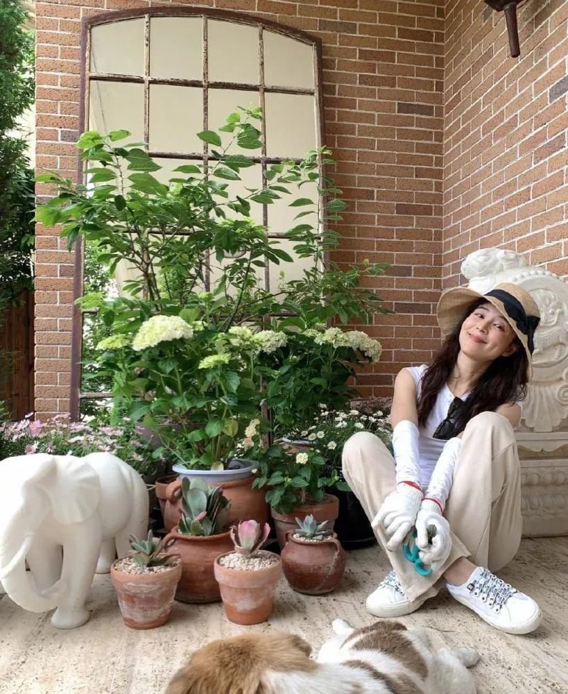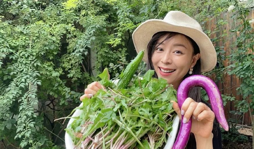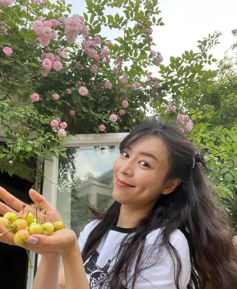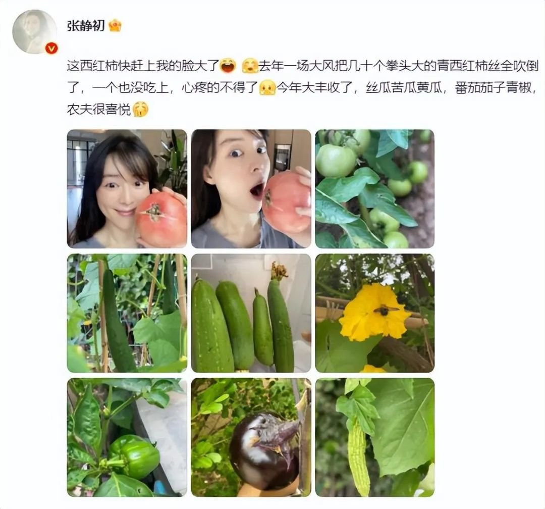 墙上有花,院里有树,连瓜果蔬菜,张静初都自己种植。