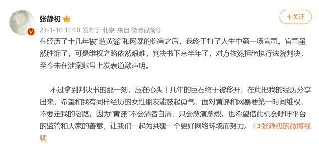2021年6月份,当网上再次出现关于她的诽谤视频时,她直接把这名网络黑子告上了法庭。