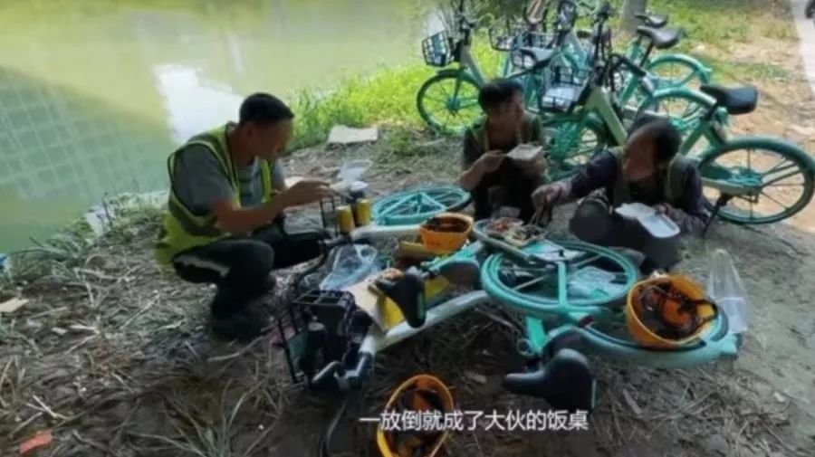 有些则直接就地取材,把没人要的破烂沙发拉过来当座椅,将废弃的共享单车当成临时的饭桌,就餐环境的简陋,掩盖了“性价比”的优势。