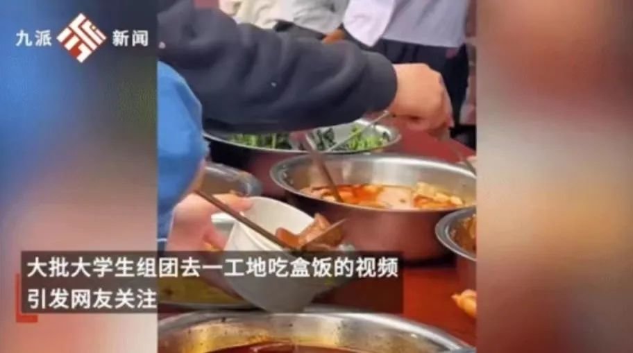无独有偶,就在近日,一则#大学生组团到工地吃盒饭#的新闻登上热搜。这事发生在四川宜宾,当地一高校学生组团来到附近工地,挤在临时支起的帐篷下埋头苦吃,盒饭13元一位,有近20种菜可以随便吃,当学校食堂阿姨们还在“抖三抖”持续帕金森发作,工地食堂早已实现了盒饭自由。