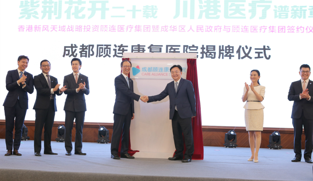 香港财政司前司长、新风天域联合创始人兼董事长梁锦松为成都顾连锦宸康复医院揭牌