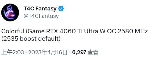 据 GPU 数据库编辑 T4C Fantasy 放出的消息,在这次新品发布中,七彩虹 iGame RTX 4060Ti Ultra W OC 显卡将会有一个出厂超频版本,其 GPU 频率可达到2580MHz,比公版默认 2535MHz 高出45MHz,这将大大提高显卡性能的表现。