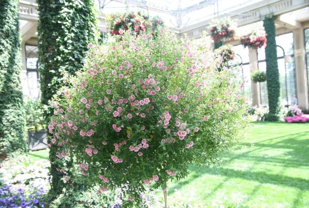 后期小木槿的花朵快要开败的时候,就可以及时剪掉残花,修剪的长度就看整棵植株,就将它们长到比较一致的形态,也可以将整个植株修剪成一个圆球的形态。
