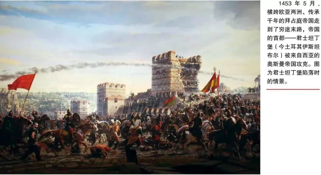 1453年5月, 横跨欧亚两洲、传承千年的拜占庭帝国走到了穷途末路,帝国的首都——君士坦丁堡(今土耳其伊斯坦布尔)被来自西亚的奥斯曼帝国攻克。对于欧洲的基督教国家来说,信奉基督教的拜占庭帝国的灭亡,对他们是个巨大的打击。