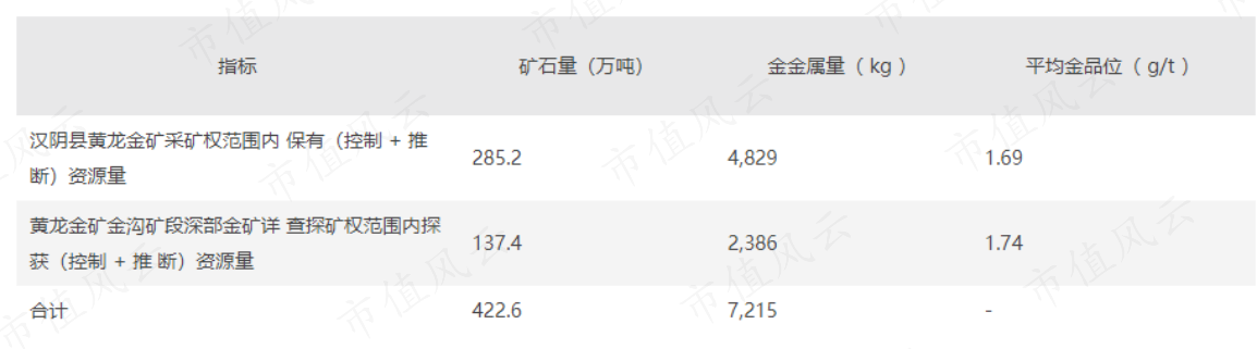 金沟矿段并未披露地质影响系数和回收率,假定与黄龙金矿相同,则可采储量为107万吨,汉阴黄龙两个矿加起来总可采储量约为329.1万吨。