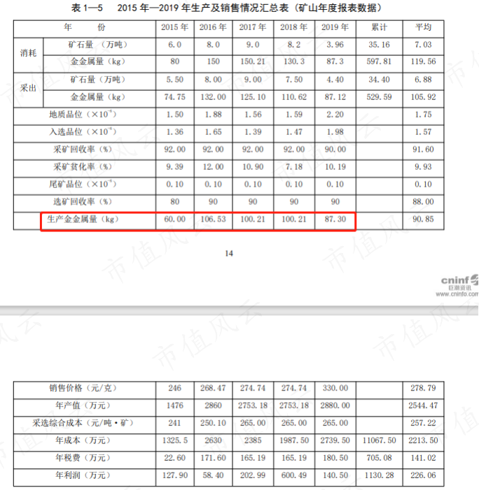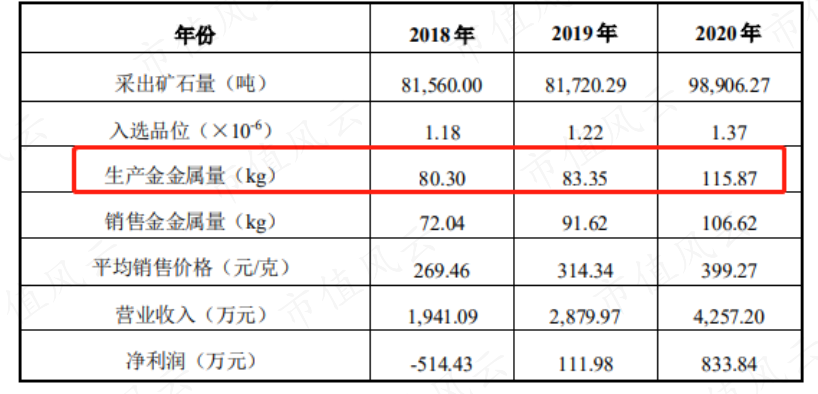 然而在公司披露的公告中,汉阴黄龙这两年总生产金金属产量分别为80.3kg、83.4kg。