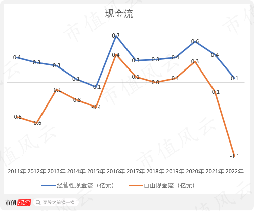 公司经营性现金流近两年来呈现下降趋势,造血能力减弱,自由现金流已连续两年为负。