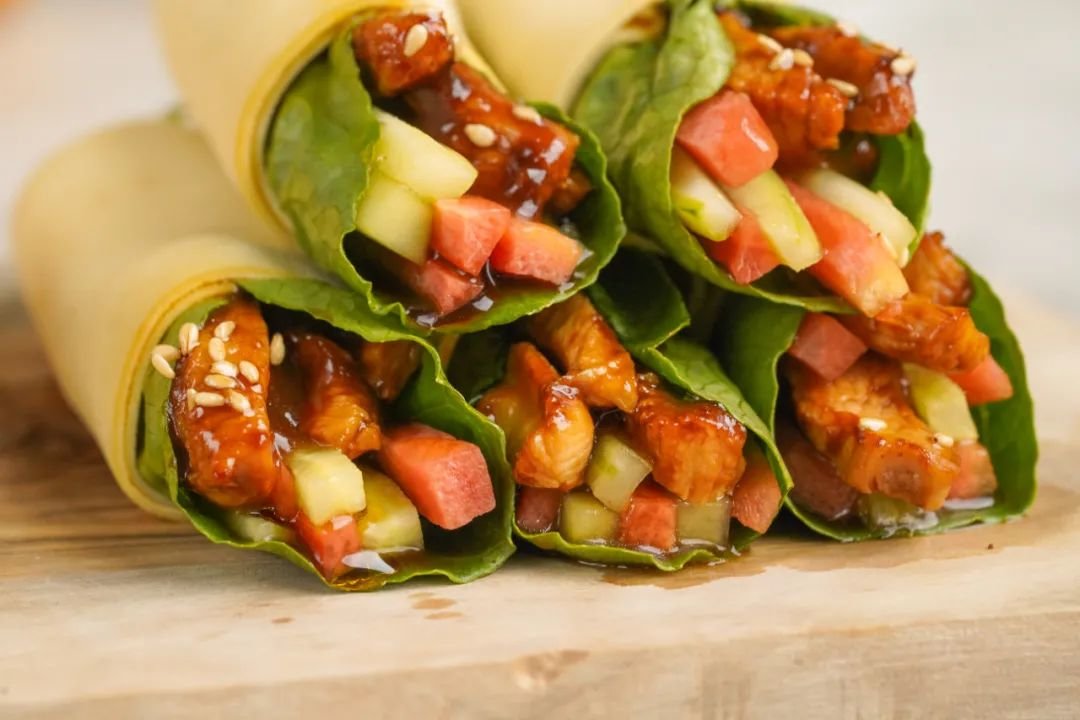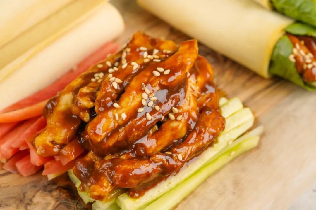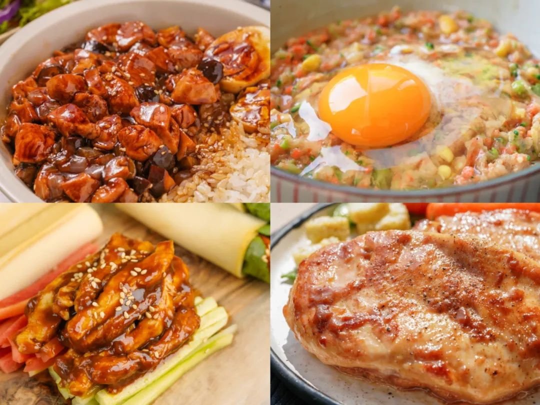 也有当早餐吃的蔬菜鸡肉饼,和用豆皮鸡肉卷这种鸡肉版的京酱肉丝,太适合夏天吃了,豆皮卷上缤纷蔬菜和嫩嫩的鸡胸肉条,酱汁一裹,惊为天菜。