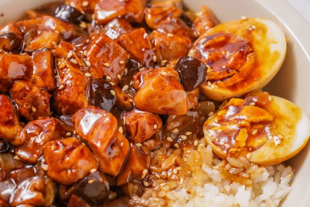 也有不算减脂但很好吃的,比如鸡胸肉版卤肉饭,虽说不算减脂,但肯定比普通卤肉饭要少油少盐得多,味道也有保证。