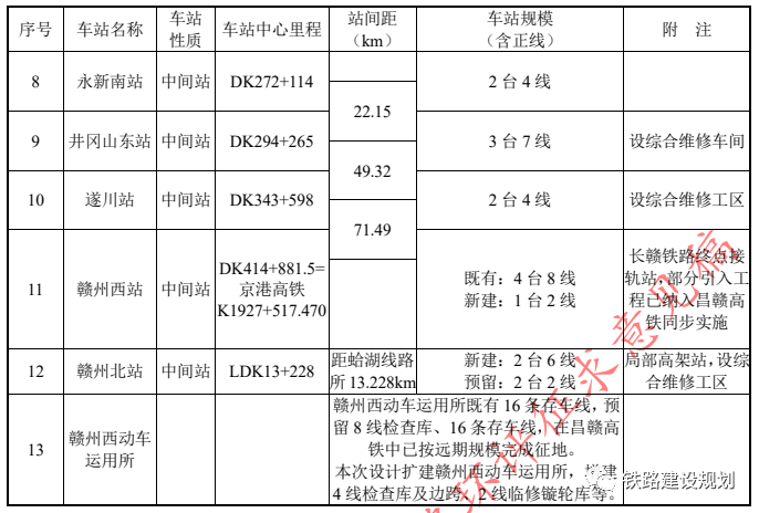 其中,除长沙西、萍乡北、赣州西 4 个车站为在建或既有车站外,其余车站均为新建车站。
