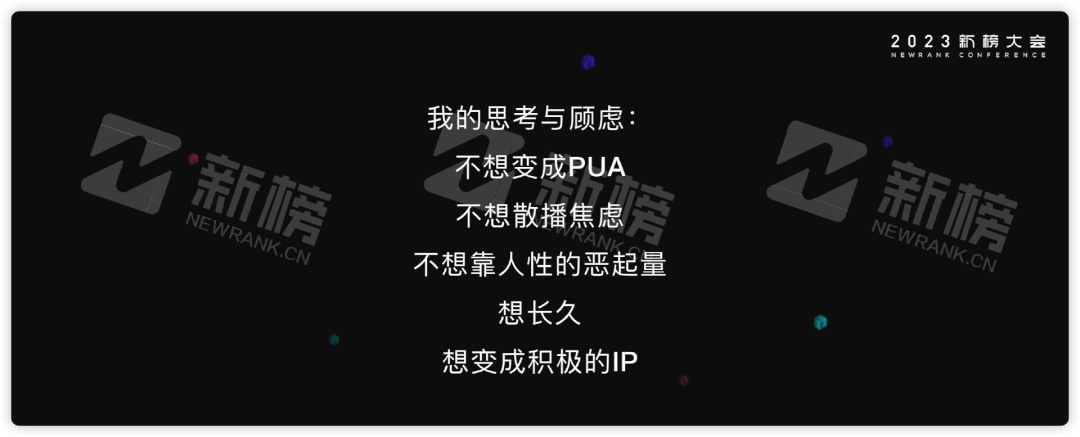 过去在这个行业说好做的时候,说的都是愤怒,利用别人的愤怒、恐惧,利用你怕衰老、怕长皱纹,利用你怕自己被落下,你会发现但凡走这条路,做久了,PUA过度了,用户就走向佛系了,因为一想到你,就想到自己是失败的。这个事情长期以往,结局是什么?一想到你就不想看了,所以我们要提供的是长期、正向的价值观。