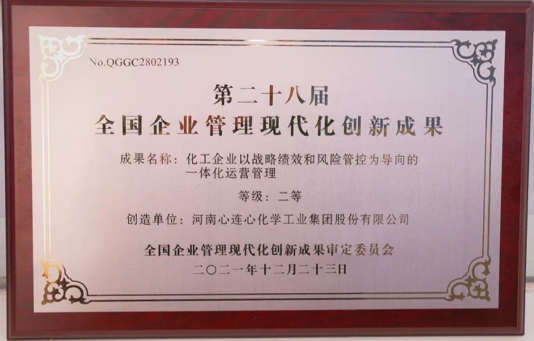 大会正式发布了第二十八届、第二十九届全国企业管理现代化创新成果,并向获奖企业颁发了证牌。由心连心公司申报的《以战略绩效和风险管理为导向的运营一体化》成果,荣获全国企业管理现代化创新成果“二等奖”。