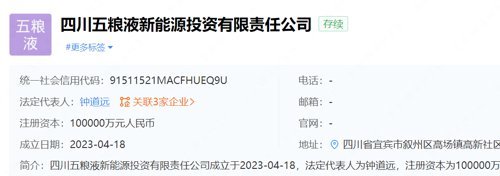 企查查显示,**四川五粮液新能源投资有限责任公司(下称,四川五粮液新能源)成立。股权穿透后,该公司由四川省宜宾五粮液集团有限公司(下称五粮液集团)100%控股。*