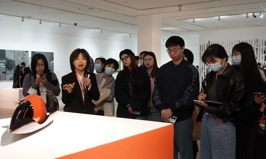 ▲ 展览策展人曾静在展览现场导览 图片来源:湖北美术馆