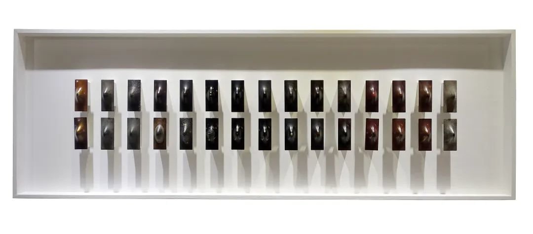 翁纪军近年来的创作,一直用简洁的形式感去探讨大漆包容、大度、内敛的东方哲学观念。此次展出的《集聚系列之2019-20》,通过多维度的对话方式彰显出这种材料的视觉魅力。