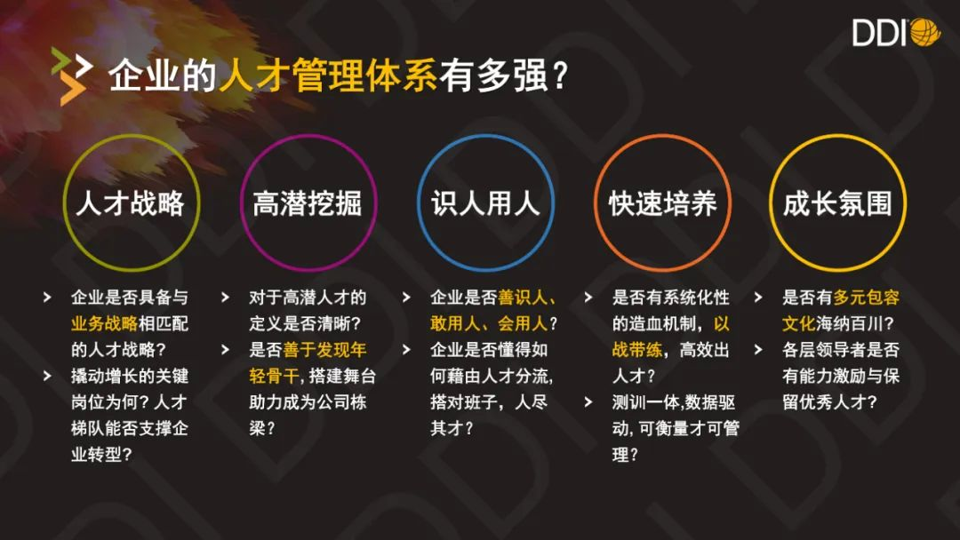 人才战略,即企业是否具备与业务战略相匹配的人才战略,撬动增长的关键岗位是什么,以及人才梯队是否能够支撑企业转型。