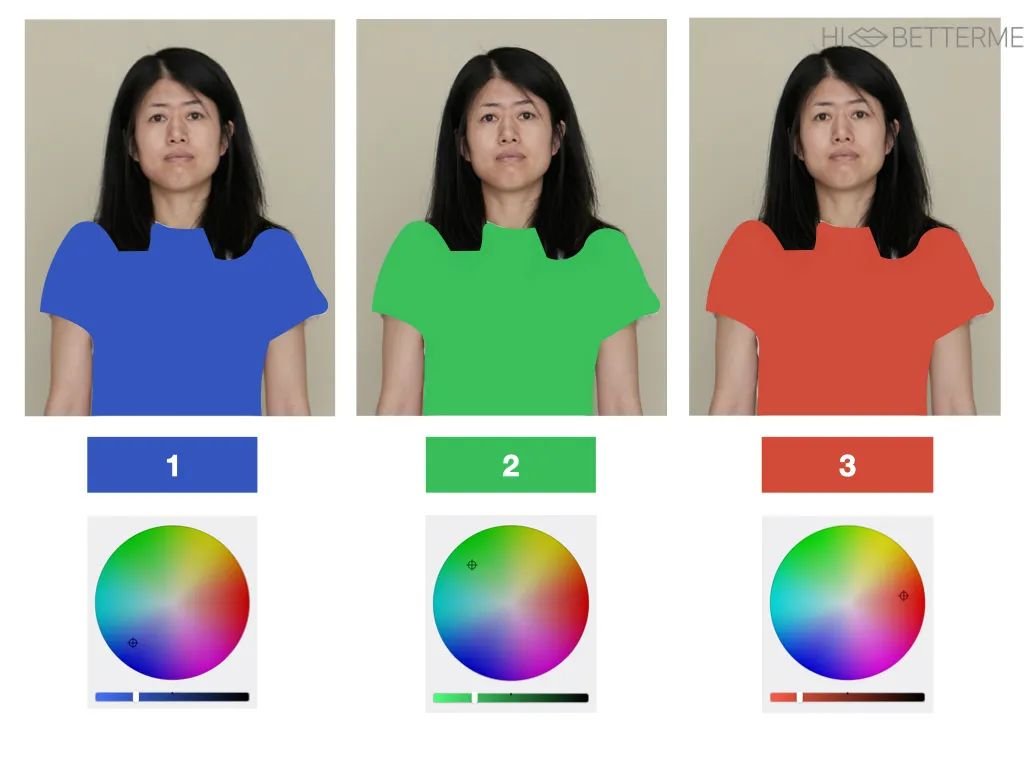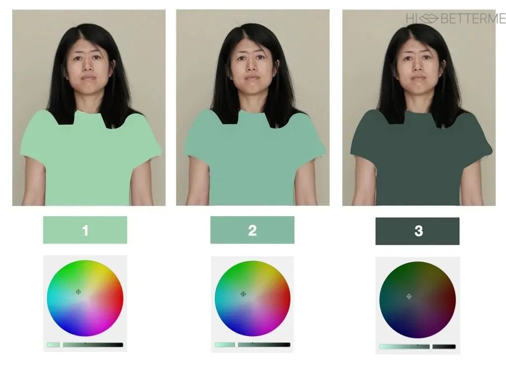 我在饱和度差不多的情况下,从左到右逐步降低了衣服的明度👇🏻