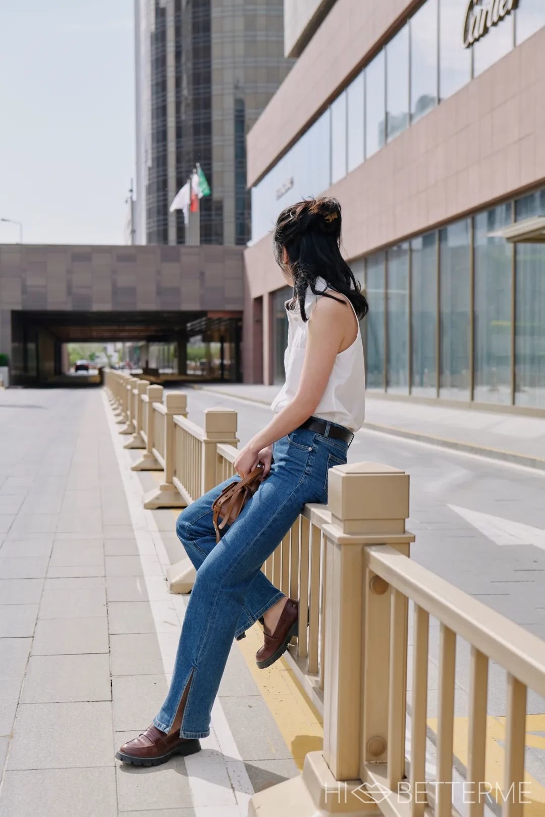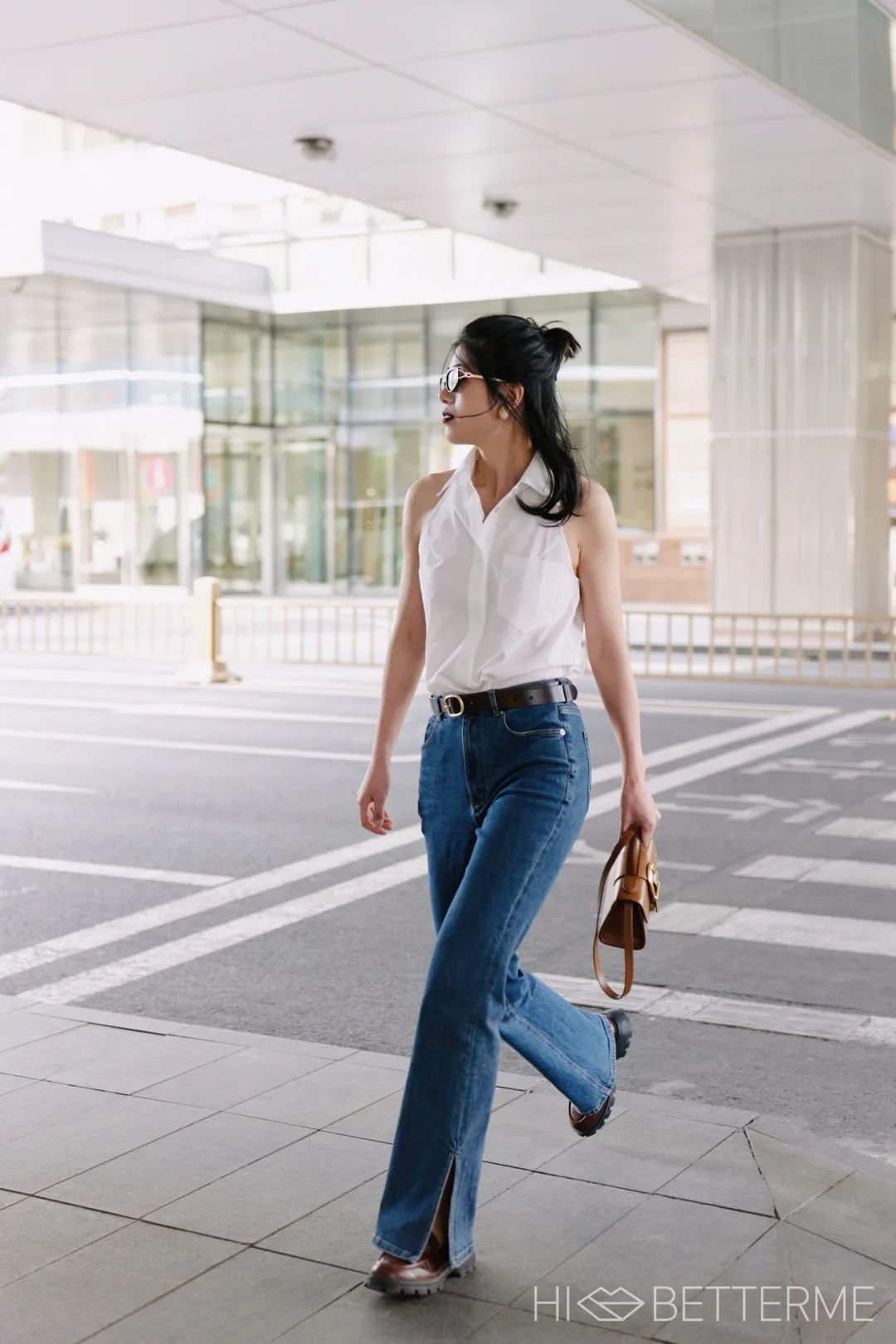 平时上班想这么穿的话,搭配一件西装外套、换一个正式点的包就行,进办公室时得记得摘掉墨镜就好哈哈哈~