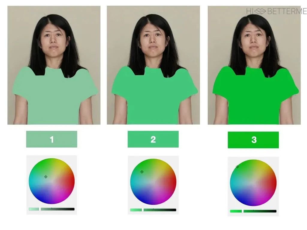 可以看到明度最高的绿色(1号色)无功无过,能穿但有点压人。