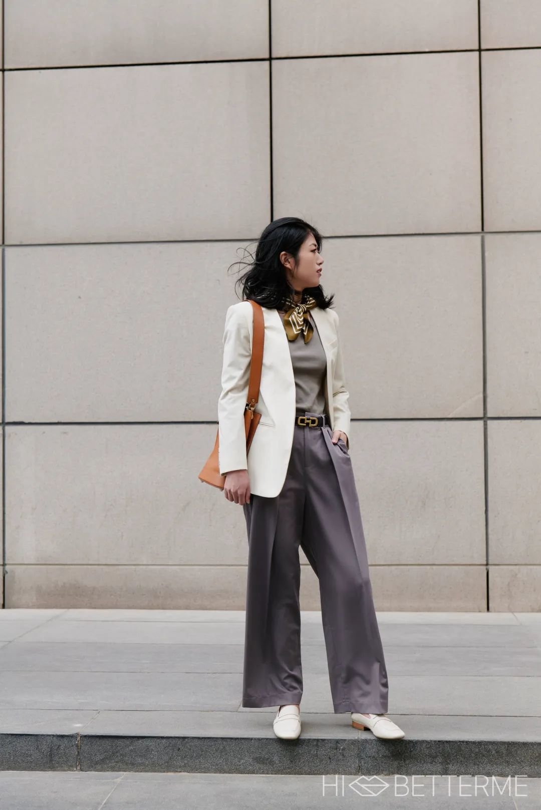 鞋子我选了一双时髦的卡其色乐福鞋,不仅好穿好走,浓郁的颜色也非常压场。
