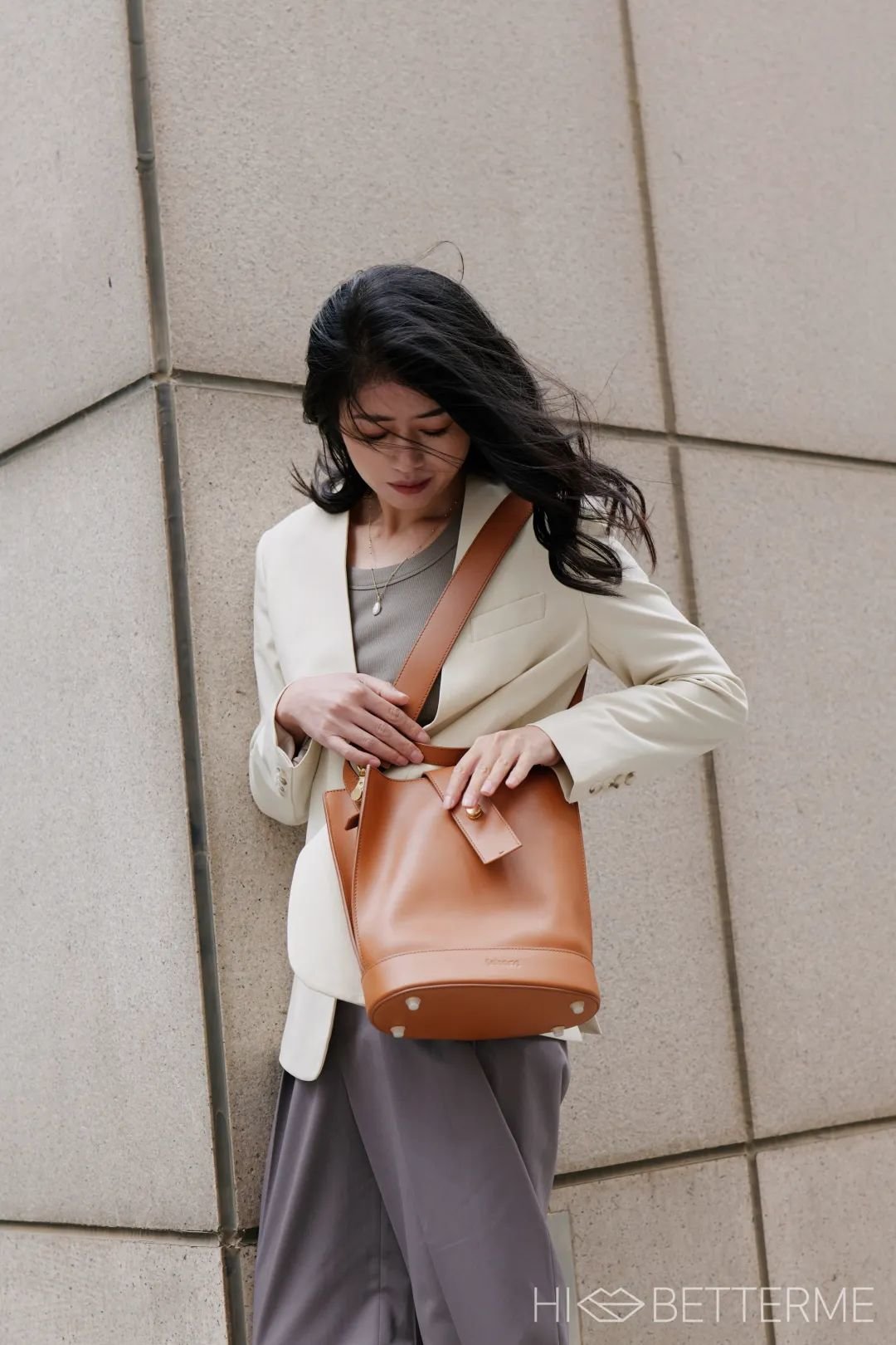 包包我选了个方正的水桶款,线条简约大方,容量也很给力,超适合上班背。