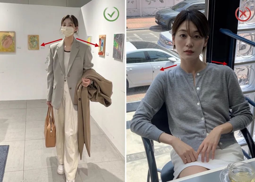 而想要「避短」,那么问题主要集中在三个部分:「肩窄」、「腰臀比小」和「腿型不直」,而这些问题其实都能通过一些版型上的细节,来轻松解决👇🏻