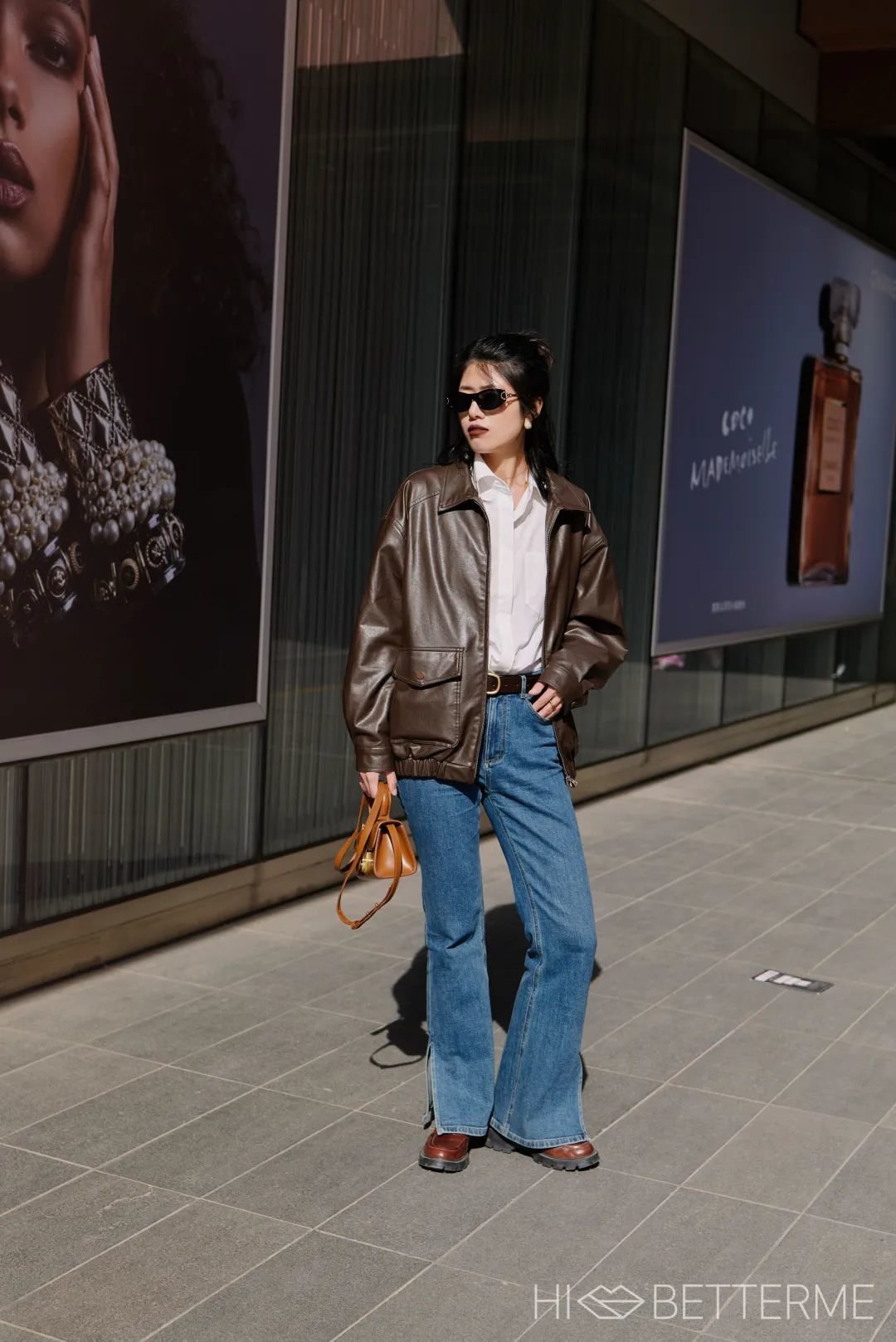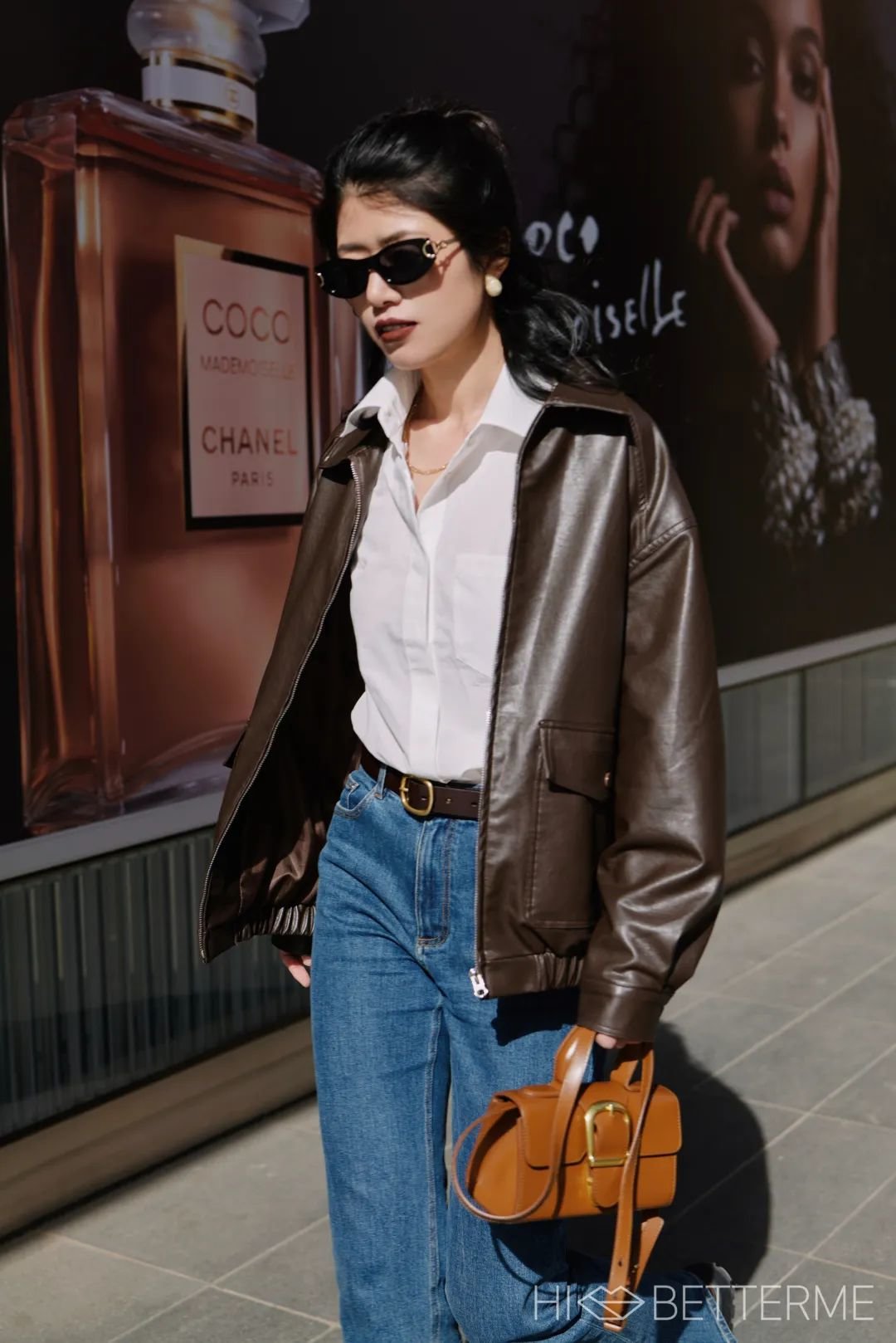 现在北方地区昼夜温差还是比较大嘛,我就顺应鞋子的颜色搭了件棕皮衣,时髦度直接就飙到了天花板!