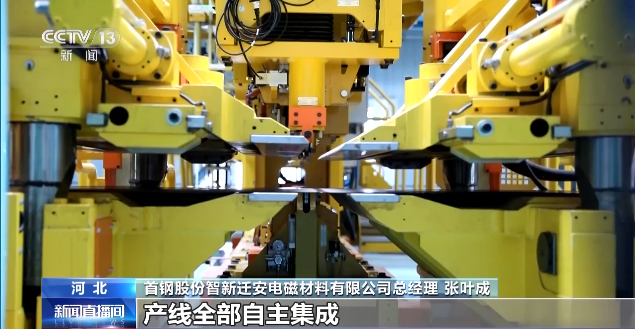 首钢股份智新迁安电磁材料有限公司总经理 张叶成:项目采用多项首创技术,产线全部自主集成,本次首发的两款产品都是面向新型电力系统的高性能软磁功能材料。