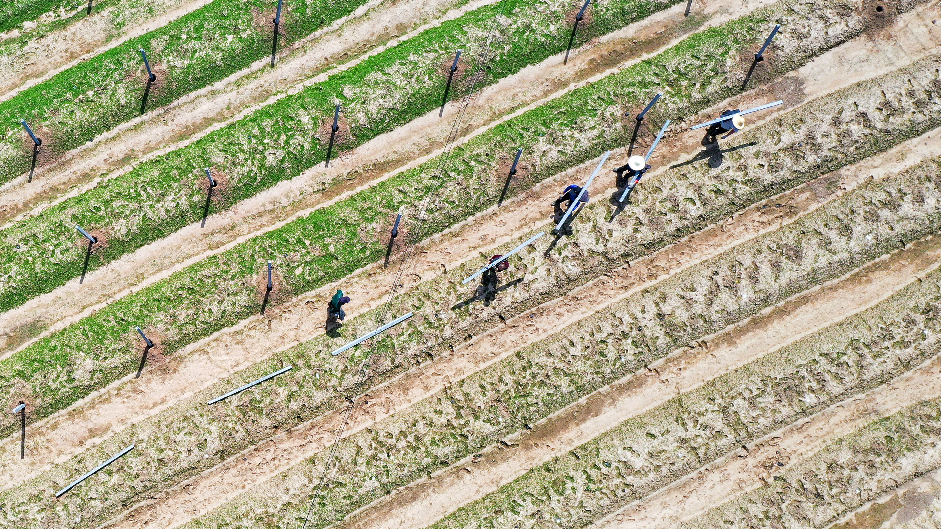 谷雨将至,武汉市新洲区沙畈村平整的农田上,拖拉机、旋耕机正繁忙作业。村党支部书记段文佑边察看进度,边盘算着农田的播种情况,“高粱刚播种完,瓜蒌地已经开始搭棚,水稻苗正准备下田。今年的农时耽误不了!”