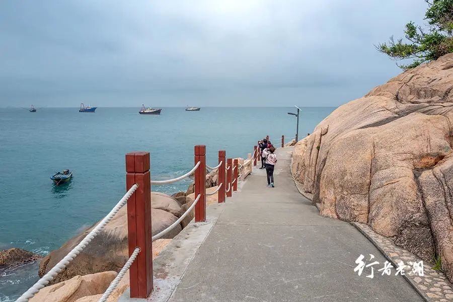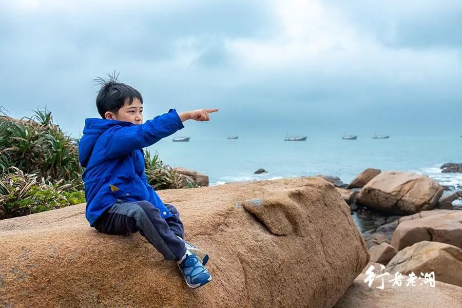 过拱桥前行是“金石奇观”,不少孩子在沙滩的石缝里找小螃蟹,父母坐在巨大的礁石上,静候日落时分,看着太阳从渔船的桅杆慢慢没入海中。沿着上山的石阶走上相思岭,凭栏观海,看傍晚海上摇曳的渔船,旌旗飘飘,渔民坐在甲板上,煮三五海鲜,酌几杯小酒,悠闲似神仙。