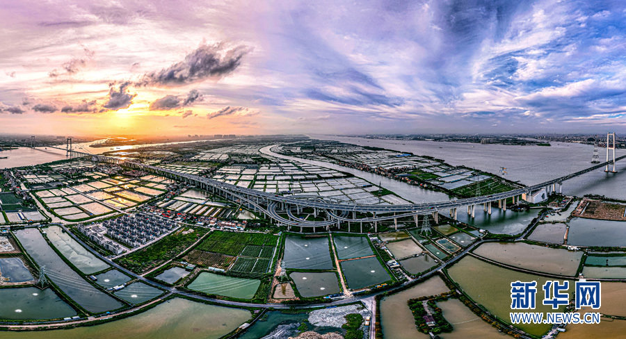 无人机在300多米高空航拍南沙大桥。新华网发(黄巧珠 摄)