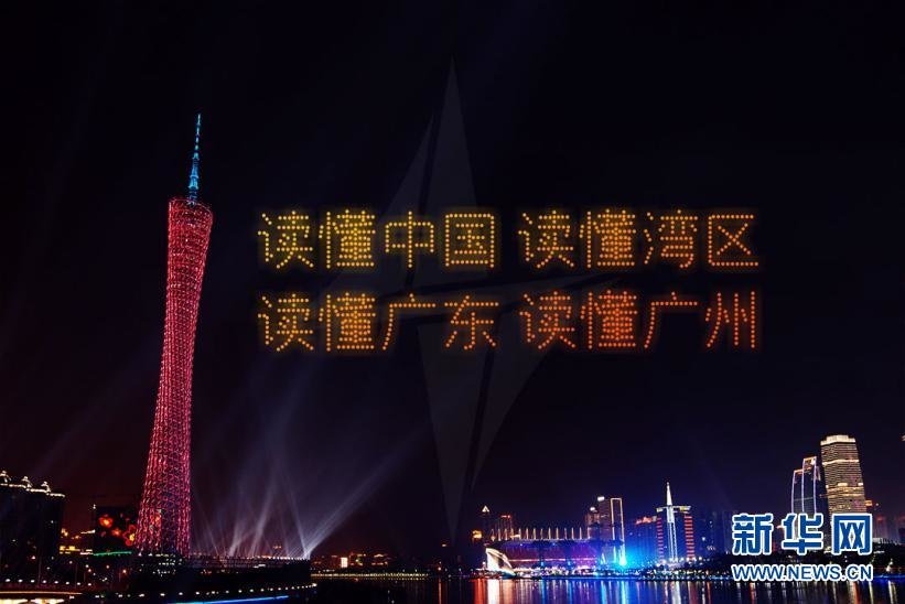 “读懂中国·湾区对话”专题论坛4月18日至20日在广州举行,图为无人机编队在空中拼成“读懂中国”等字样。新华网发(主办方供图)
