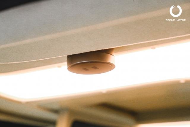 为了满足视频内容创作者及摄影师的日常工作需求,并结合ATELIER 220V 2200W的对外放电功能,车内顶棚布置了一圈三合一轨道系统,空调出风口、取电器、车内悬挂机构均被集成在了里面,可使用不同的取电插头为设备供电。